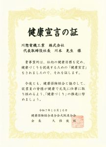 川惣電機工業株式会社は「健康宣言」を行い、